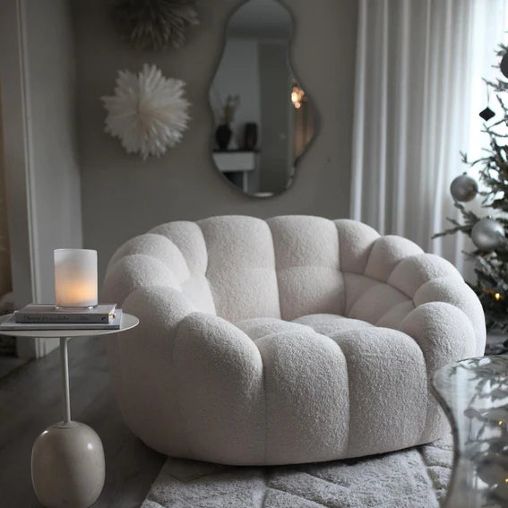 Stylishly designed and soft to the touch, the Fleece White Big Pumpkin Sofa Chair is the perfect furniture piece for an immersive and enjoyable living experience. Its realistic and intricate design details make it stand out. Its cushions are exceptionally soft due to its Teddy Bear materials. Durably constructed with wood and plywood frames, it's the perfect chair for any home.