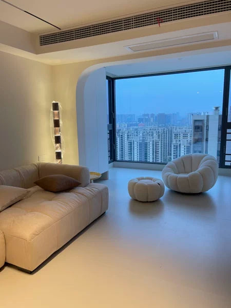 Fleece White Pumpkin Sofa Chair with Footstool