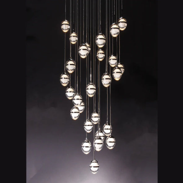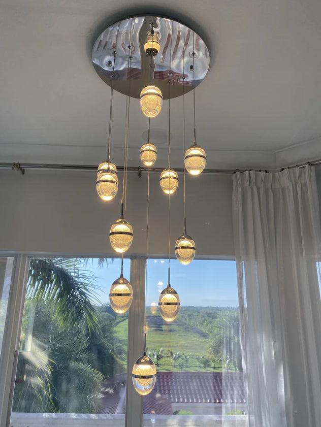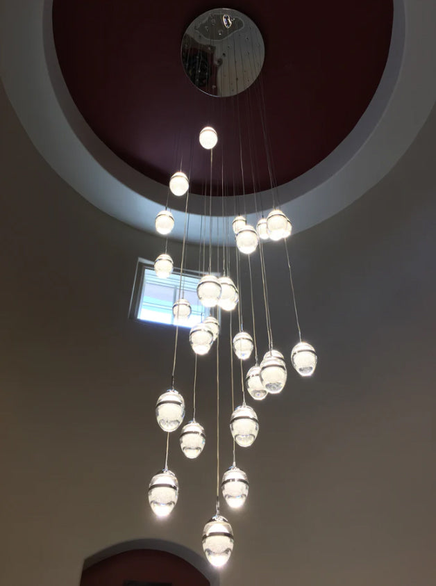 Flush Mount Extra Long Glass Bubble Pendant Chandelier for Foyer/Living Room/Stairs