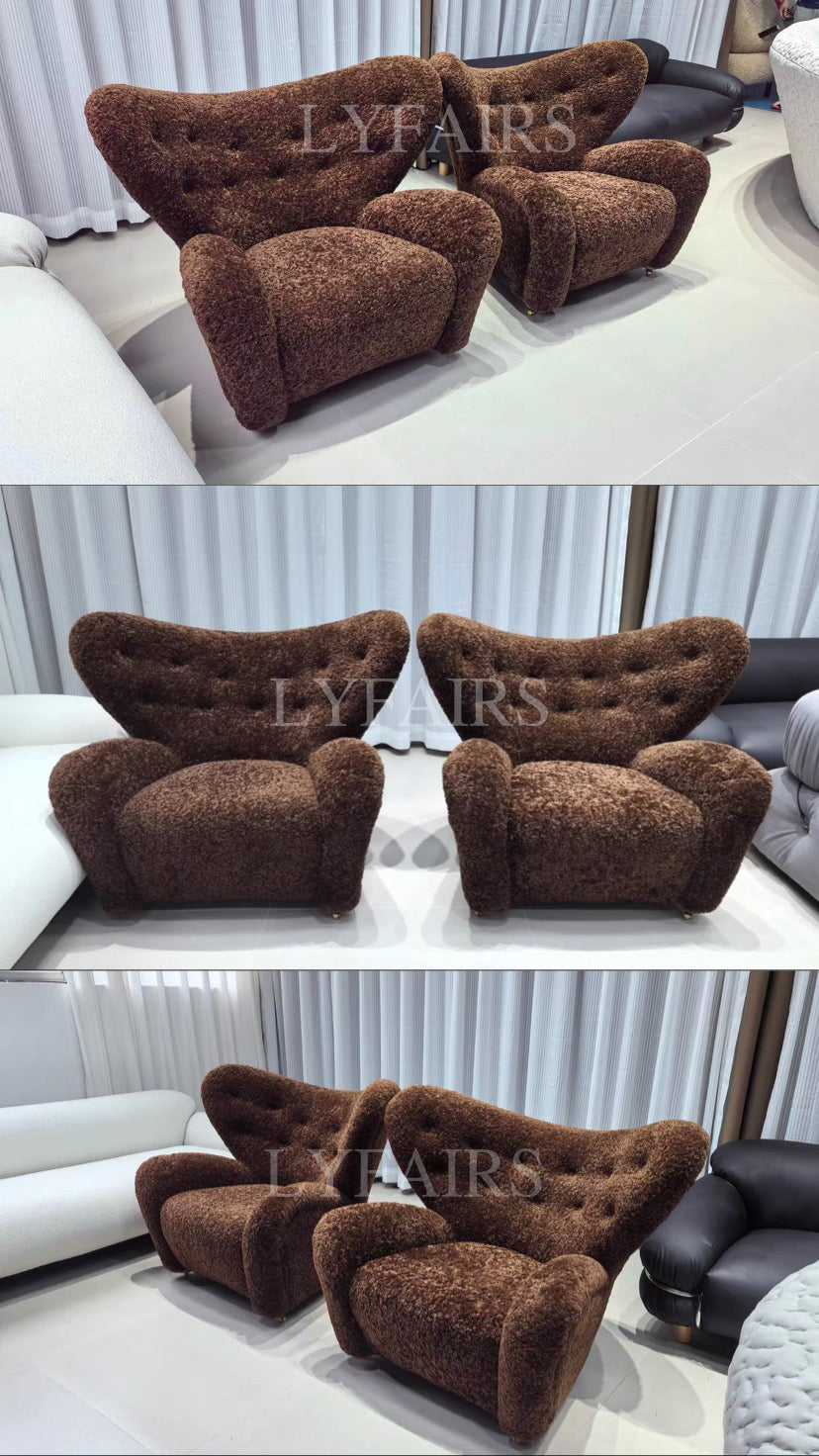 Add a touch of retro charm and cozy comfort to your space with this unique, textured sofa chair. Its rich brown, boucle-style upholstery and distinctive wingback design create a warm, inviting look perfect for lounging. This chair not only offers plush comfort but also serves as a stylish statement piece that combines vintage aesthetics with modern coziness.