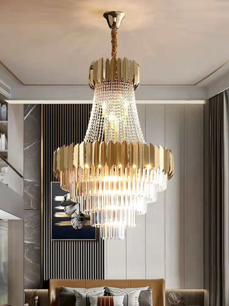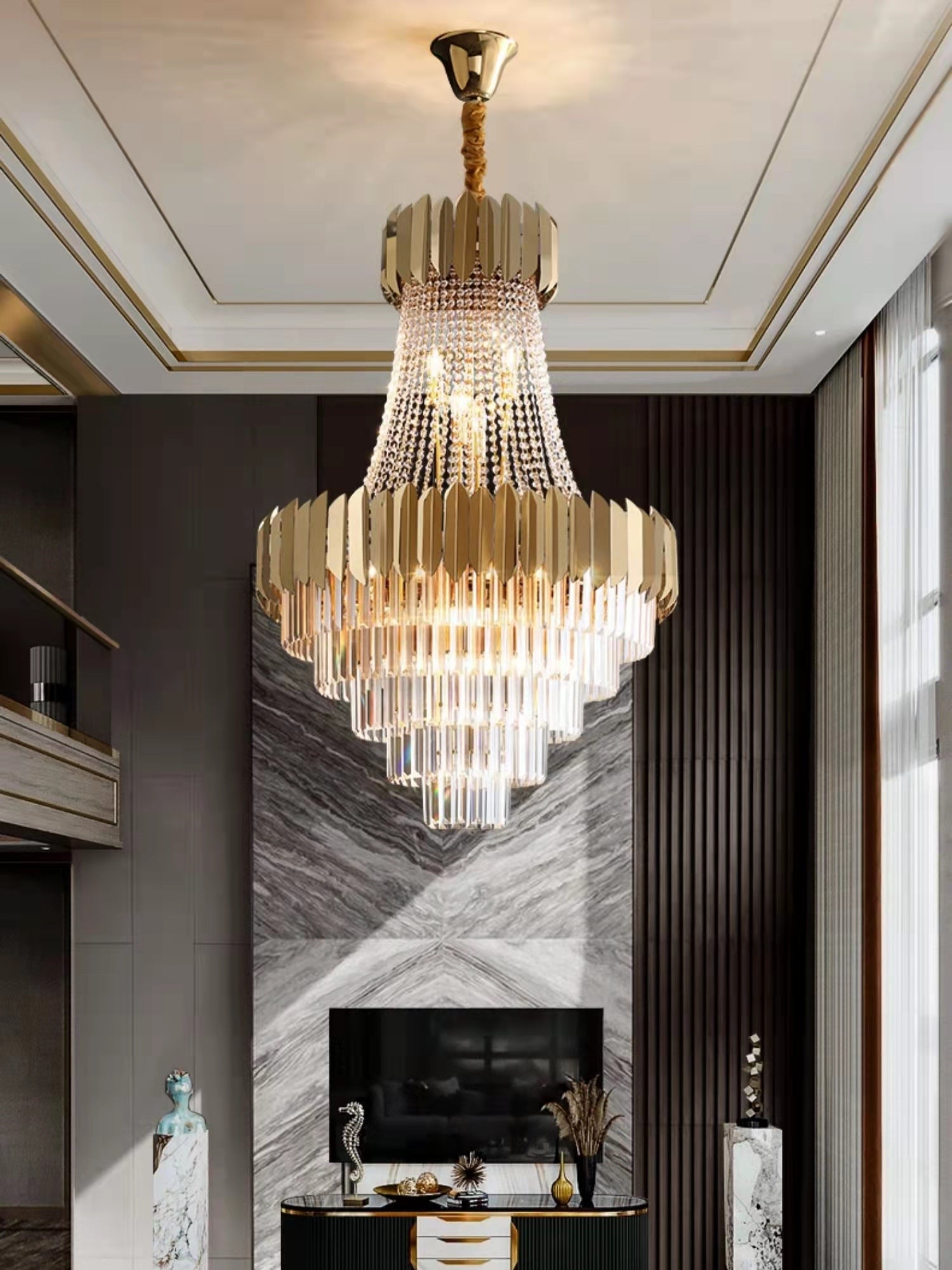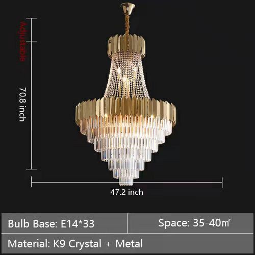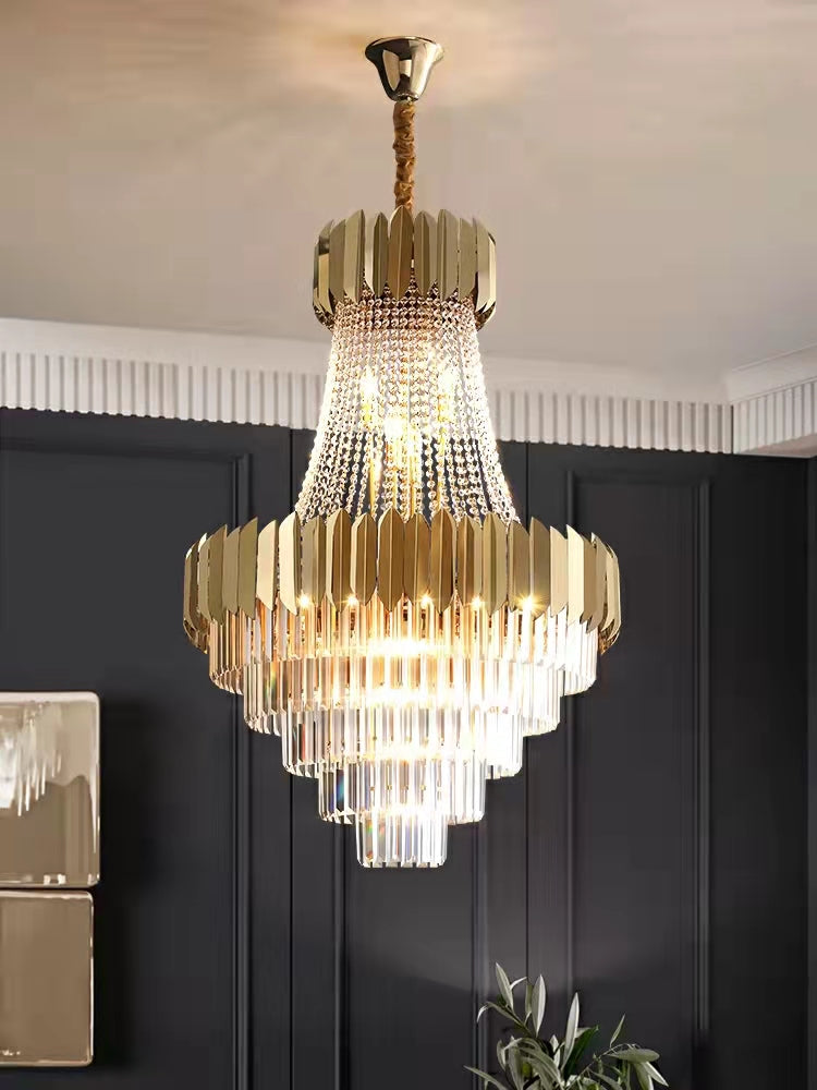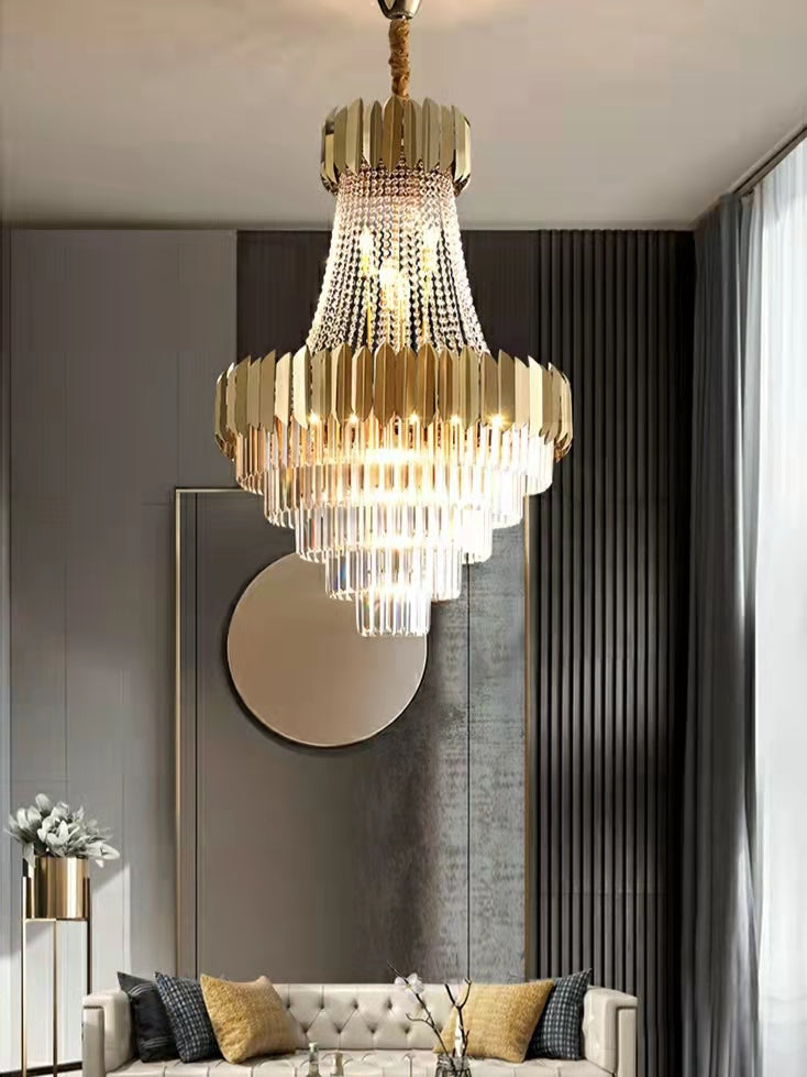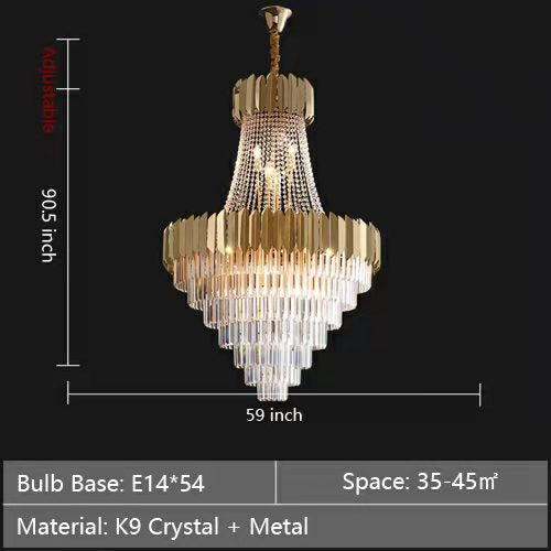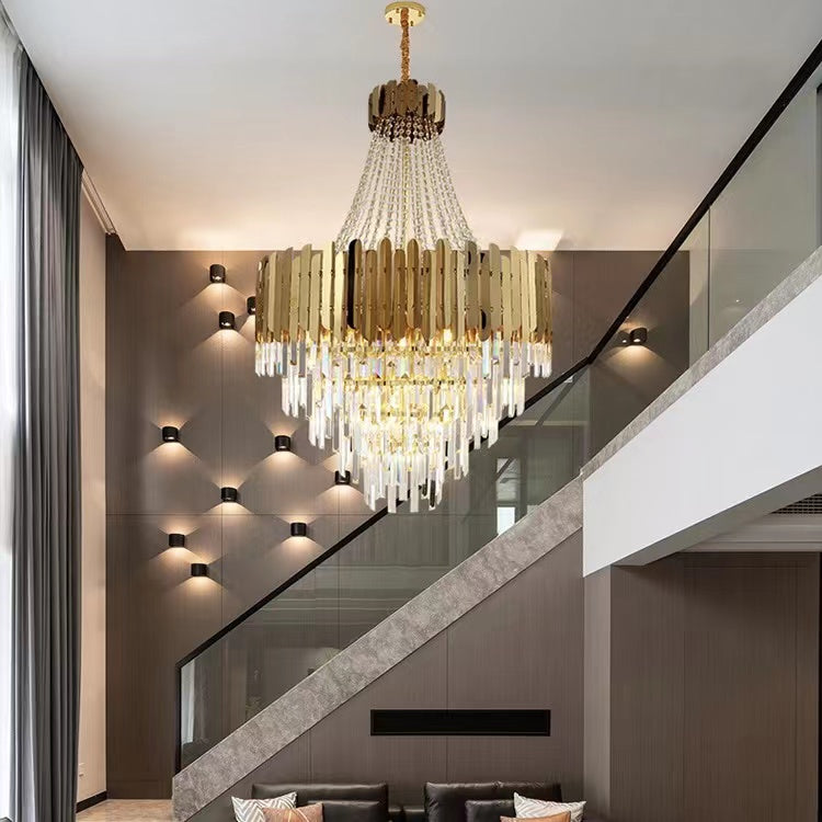Hallway Golden Crystal Chandelier Luxury Ceiling Lamp for Living Room Staircase
