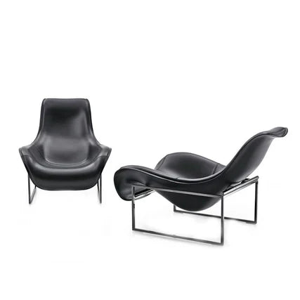 Italian Minimalist Fiberglass Lounge Chair Leather Accent Chair