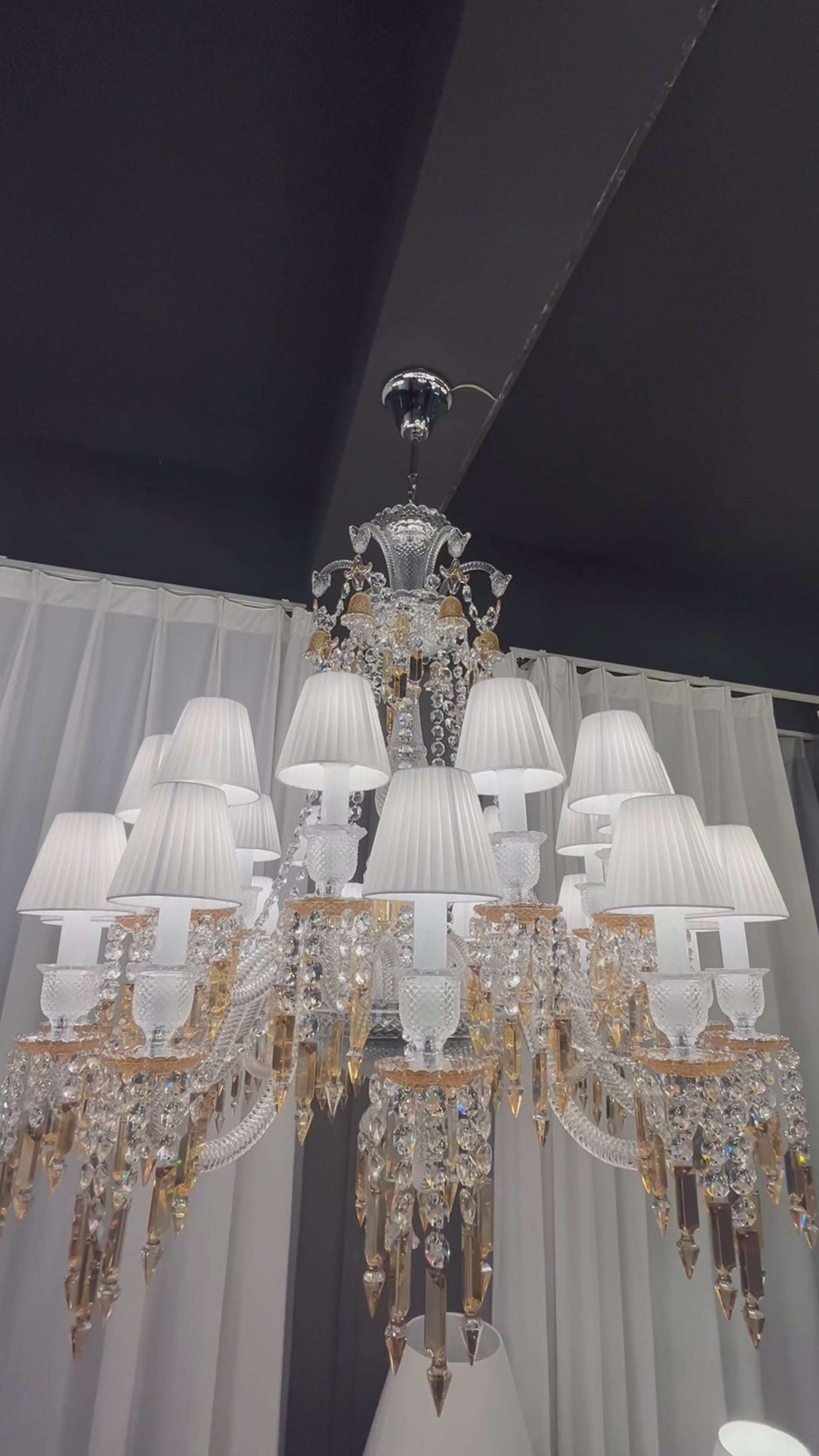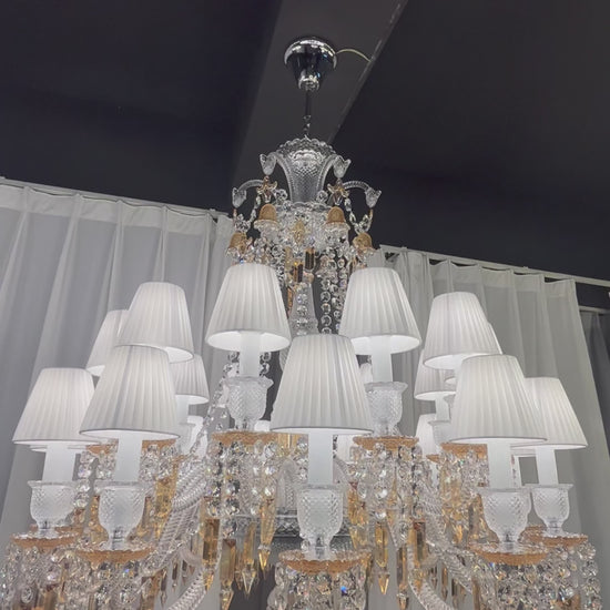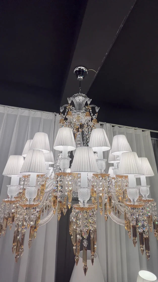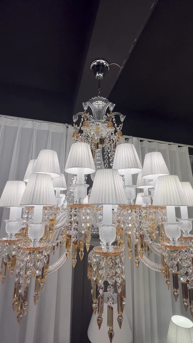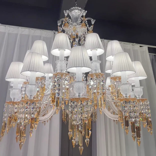 Large Light Luxury Classic Tiered Yellow Crystal Candle shaded Chandelier for High-ceiling Rooms/Living Room