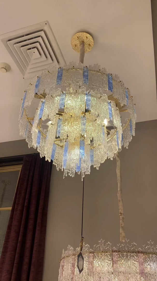 Light Luxury 5-Tier Round Pink/Blue Crystal Chandelier for Living Room/Bedroom