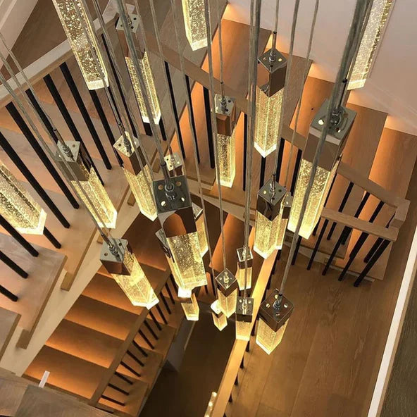 Modern Glacier Bubble Crystal Sticks Chandelier in Gold/Chrome/Black Finish for Staircase/Foyer