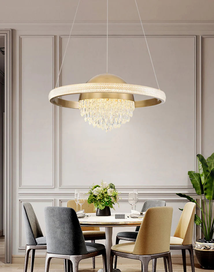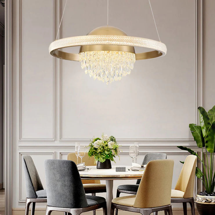 Light Luxury Planetary Chandelier in Brass Finish for Dining Room