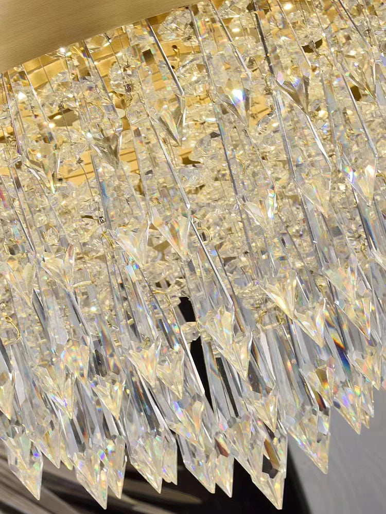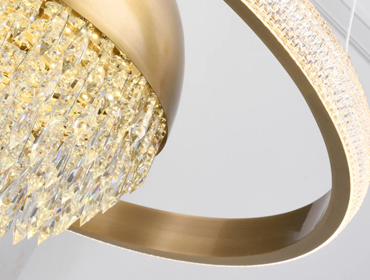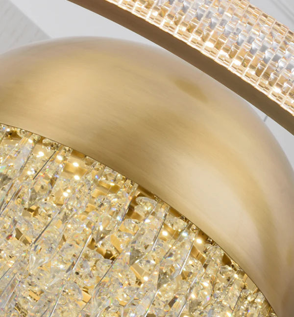 Inside a semi-circular eggshell made of smooth metal, countless crystal threads are woven into a hemisphere and decorated with crystal tassels. Inspired by the planets orbiting the sun in the universe, it adds an extra touch of romantic imagination. The elegant look is sure to make one feel confident and tasteful. The high quality crystal crown brings a new luster to the room. Flexible hanging line for a variety of applications including living rooms, dining rooms, villas and duplexes.