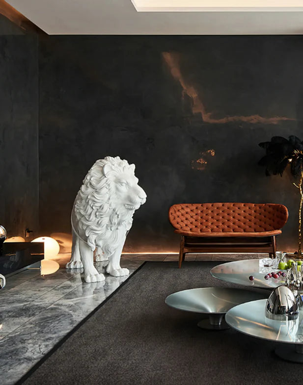 Illuminate your space with the regal Lion Floor Lamp. This elegant lamp features a sleek design and provides a warm, ambient light that is perfect for any room.