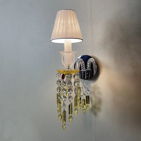Luxury 1-Candle Yellow&Clear Crystal Wall Lamp