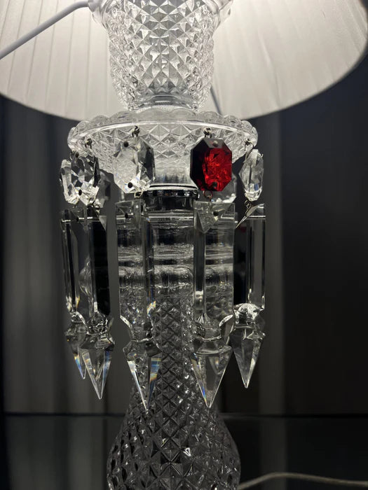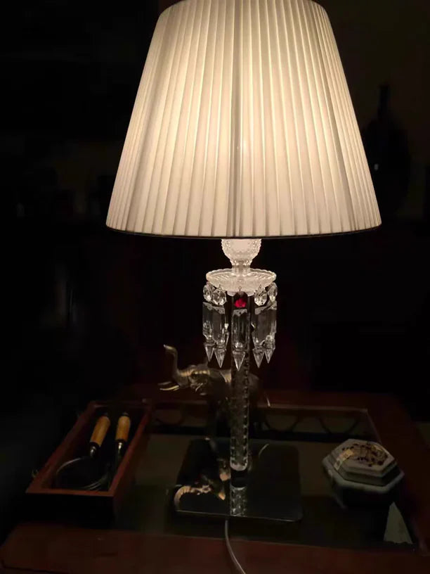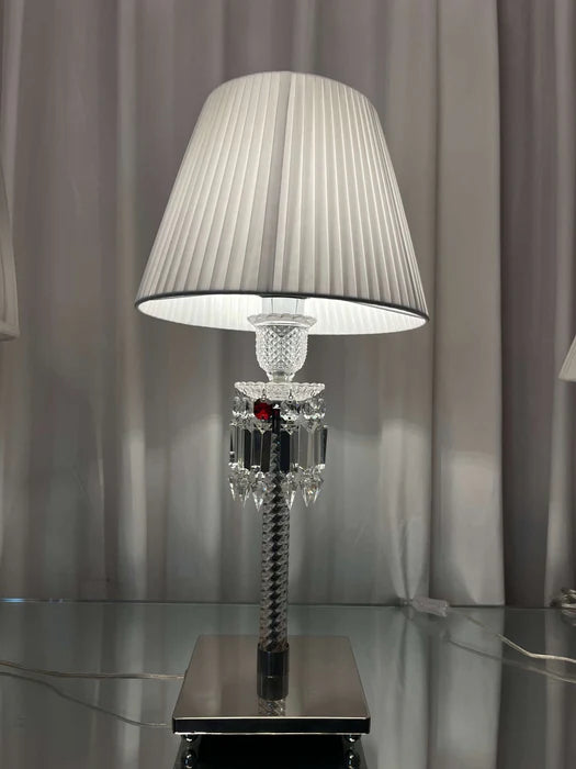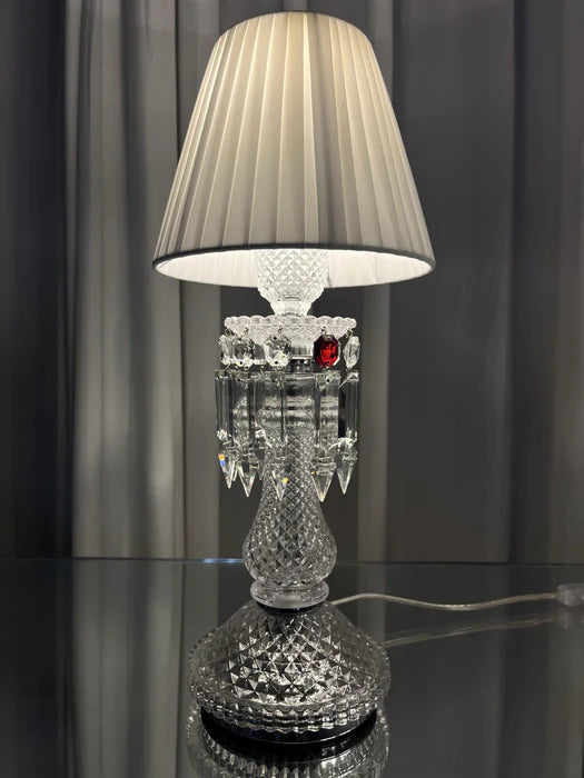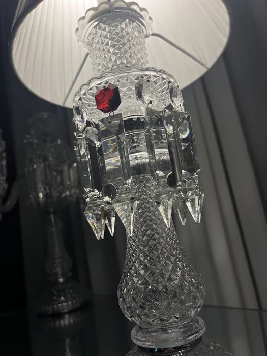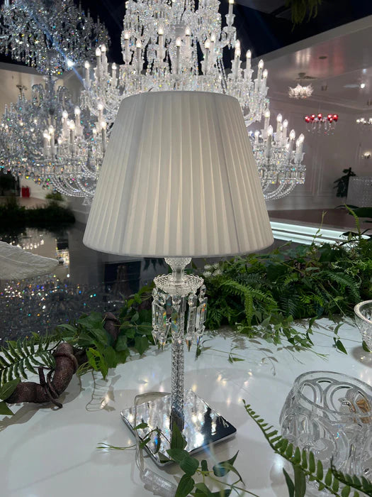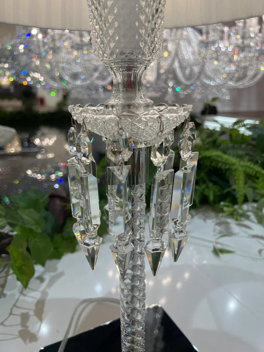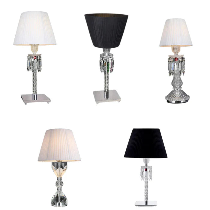 Add a touch of elegance to any room with this luxurious crystal table lamp. The stylish black and white design and fabric shade exude sophistication, while the sparkling crystal accents add a vintage-inspired touch. Elevate your space with this timeless and eye-catching piece.