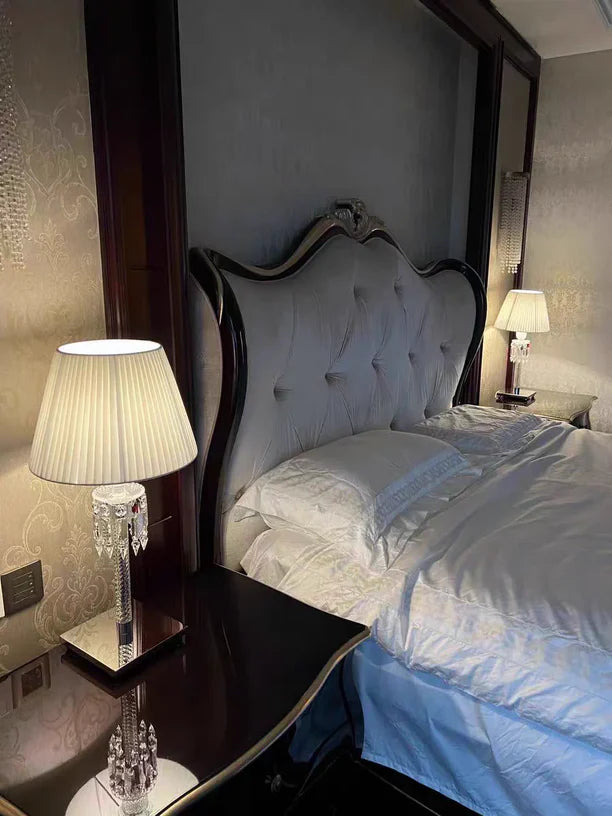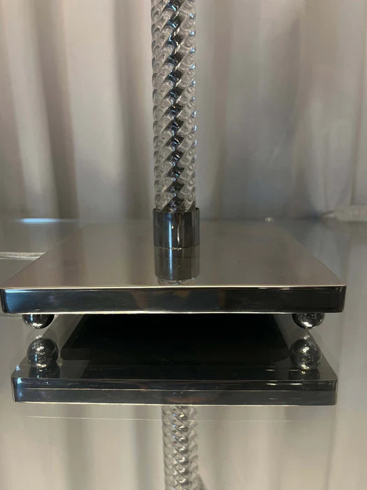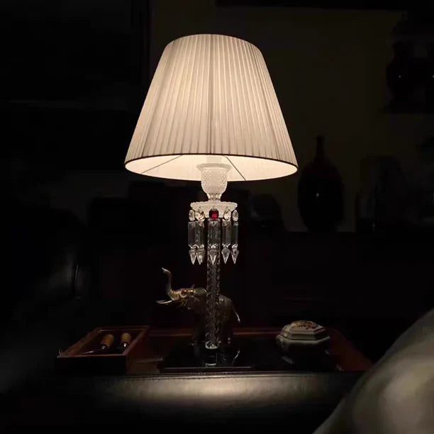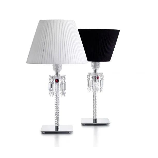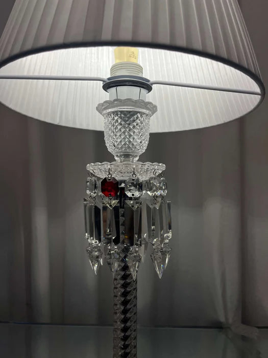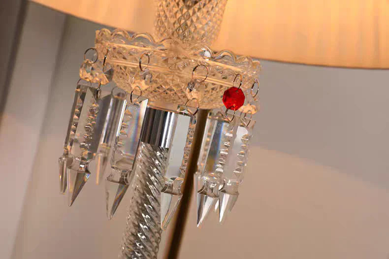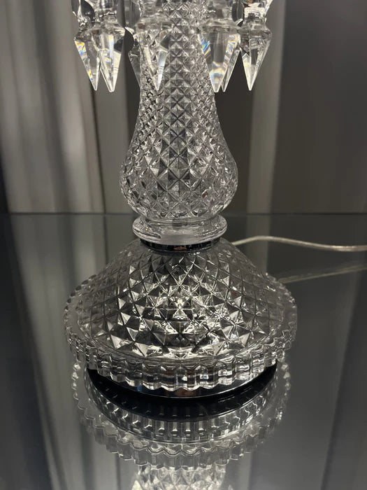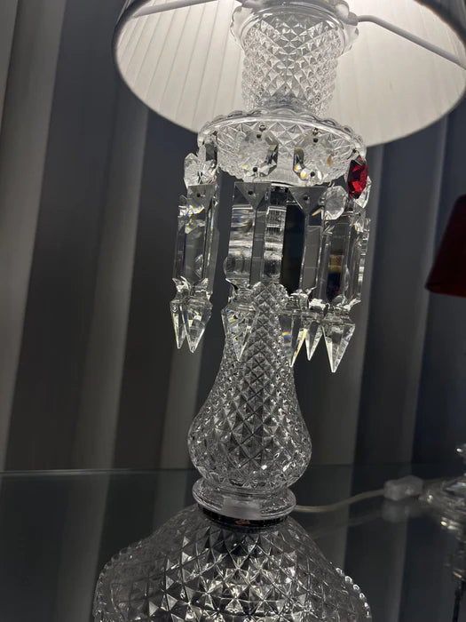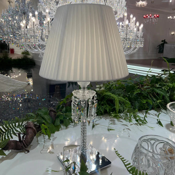 Add a touch of elegance to any room with this luxurious crystal table lamp. The stylish black and white design and fabric shade exude sophistication, while the sparkling crystal accents add a vintage-inspired touch. Elevate your space with this timeless and eye-catching piece.