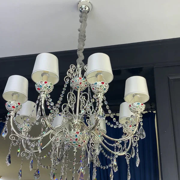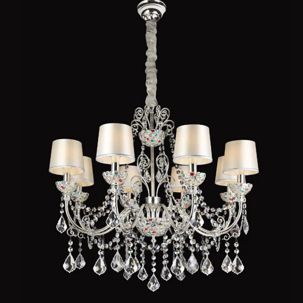 Luxury Candle Light Colorful Crystal Chandelier in Silver Finish