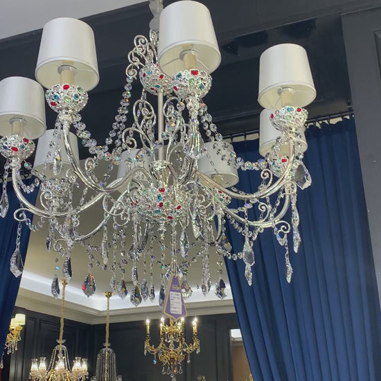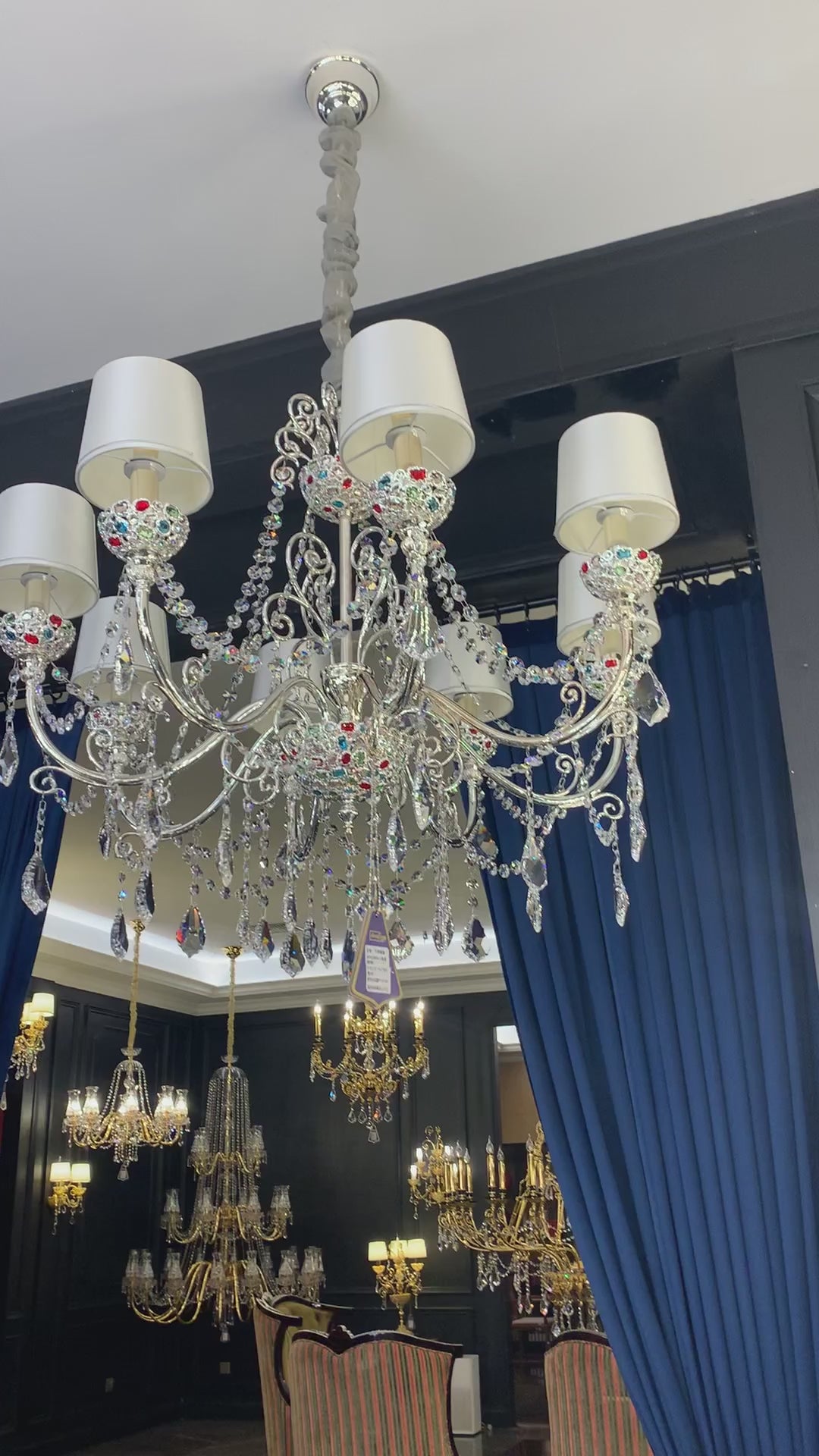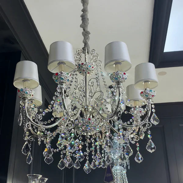 Elevate your space with our Luxury Candle Light Colorful Crystal Chandelier in Silver Finish. The elegant design exudes sophistication and refinement, bringing a touch of vintage charm to any room. Crafted with expert craftsmanship, this chandelier adds a touch of opulence to your home while providing a warm and inviting ambiance.