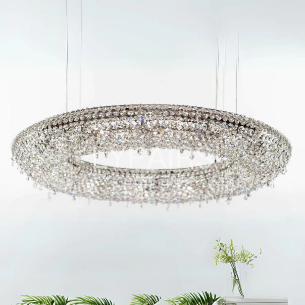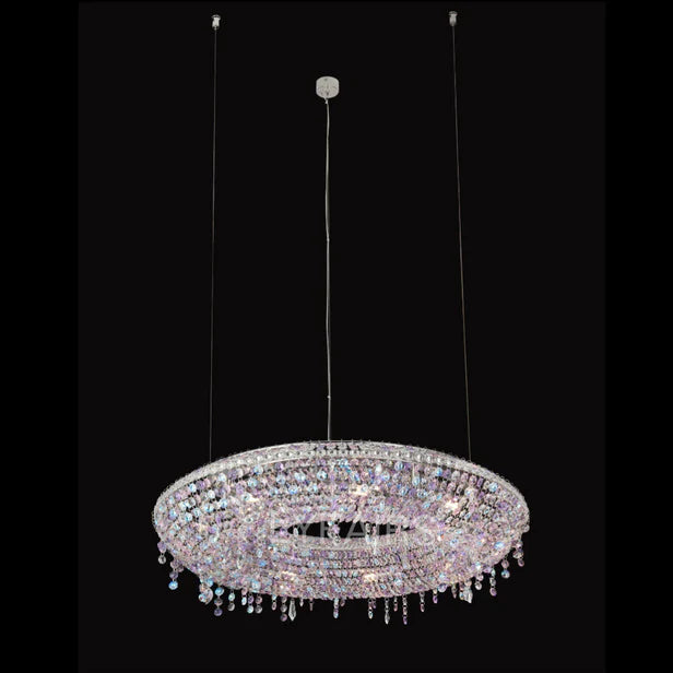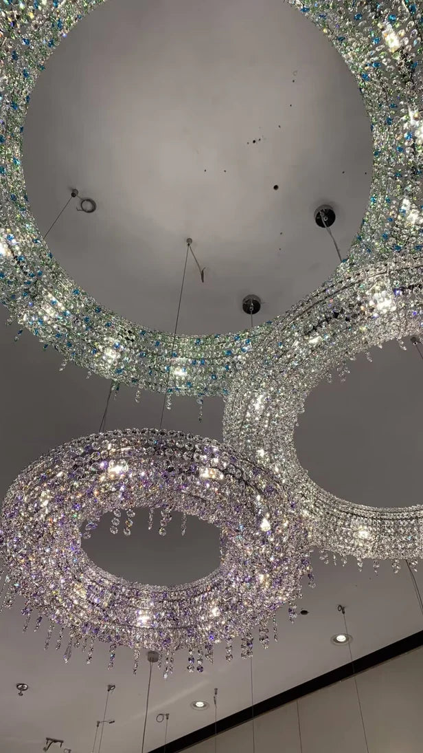 Introduce a touch of elegance into your living room or low-ceilinged space with our Luxury Circle Colorful Crystal Chandelier. Its creative design adds a unique charm to any room, while its colorful crystals reflect light for a stunning display. Elevate your space with luxury and sparkle.