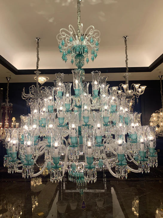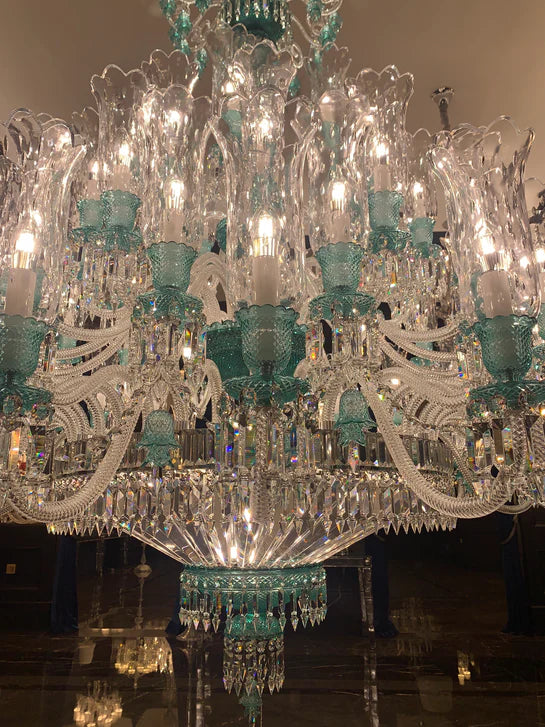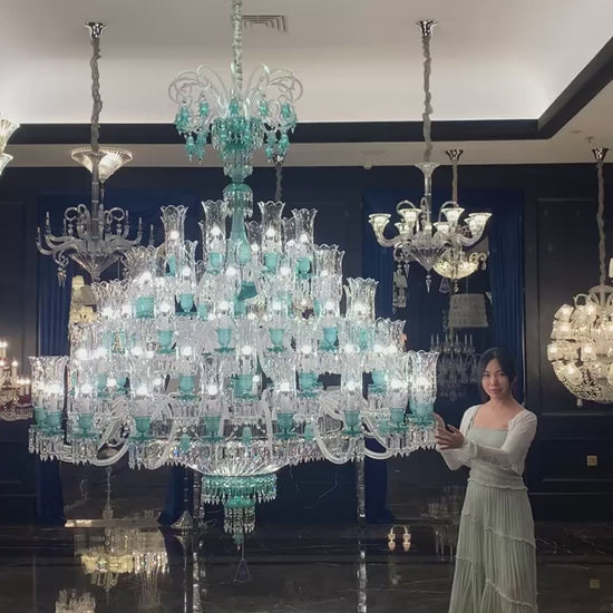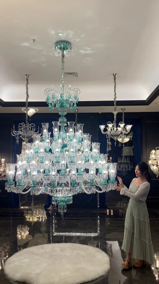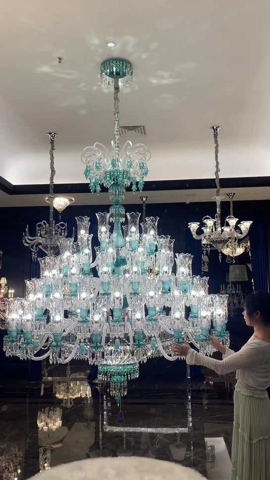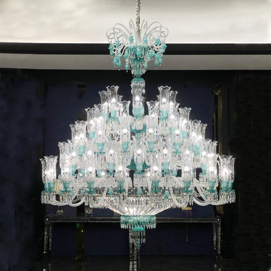 Elevate any room in your home with our Luxury Classic Candle Light Tiffany Green Crystal Chandelier. Its elegant and noble design exudes sophistication and adds a touch of grandeur to your living room, staircase, or foyer. Enjoy a luxurious atmosphere and elevate your space with this exquisite chandelier.