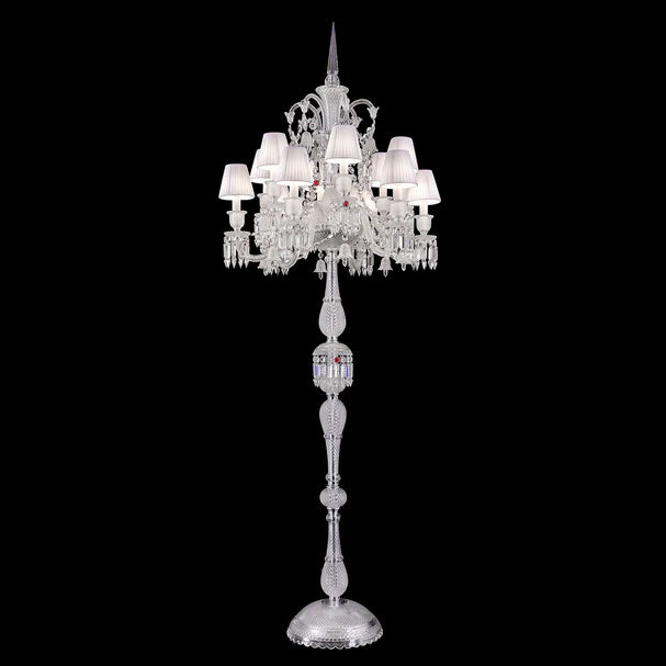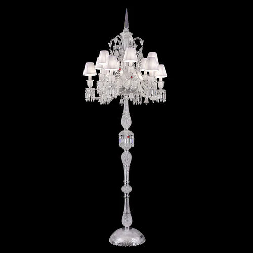 Luxury Classical Candle Light Crystal Floor Lamp with Fabric Shade