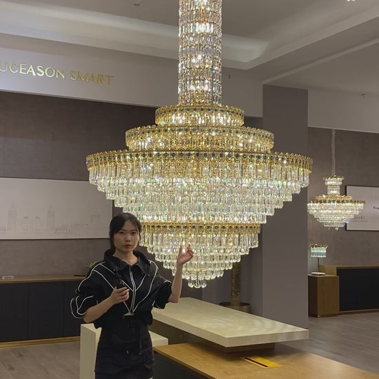 Luxury Extra Large Conical Crystal Chandelier for High Ceiling Living Room/Foyer