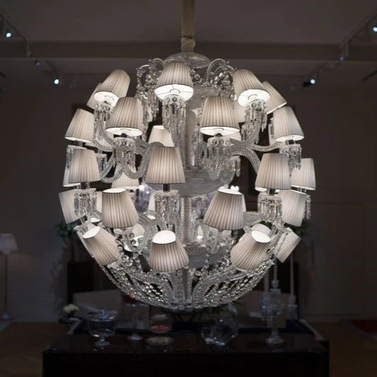 Elevate your space with our Luxury Globe Crystal Chandelier. Expertly crafted with vintage charm and high-end materials, this chandelier adds a touch of sophistication to any room. Featuring elegant fabric and crystal glass lampshades, your space will exude a luxurious ambiance. Upgrade to a timeless and opulent atmosphere with this stunning chandelier.
