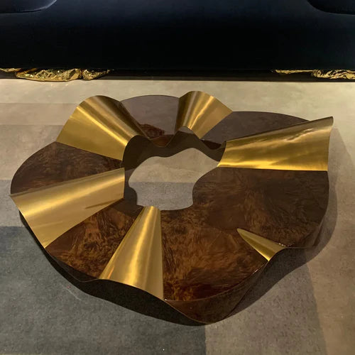 Luxury Gold Wave Natural Pomegranate Veneer Paint Coffee Table