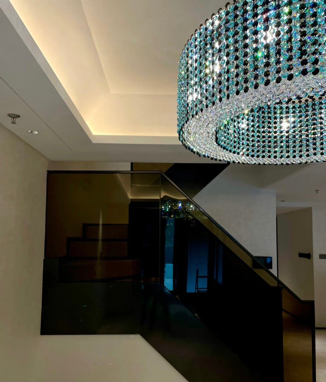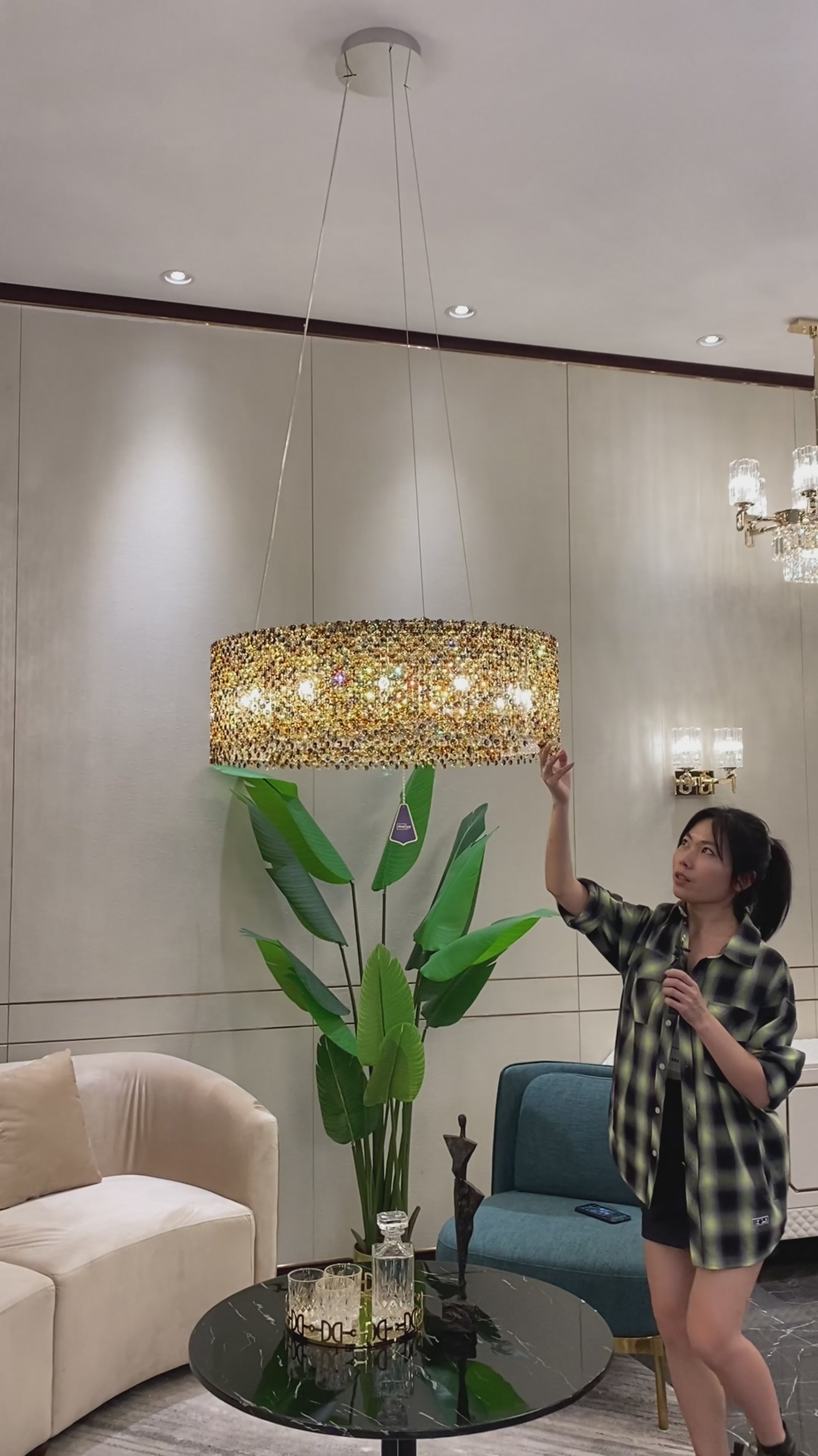 The whole light body is made of high-quality crystal and stainless steel. It is designed into a luxury modern style. It is absolutely stunning no matter light turns on or not.