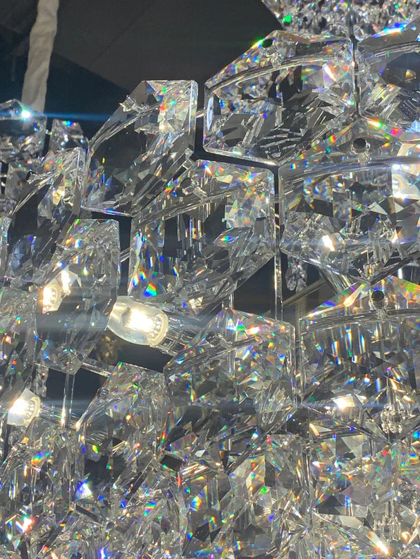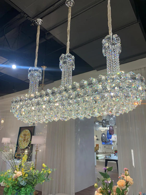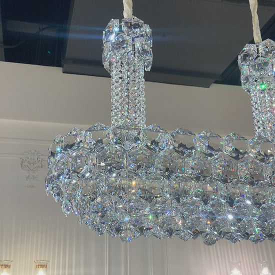 Elevate your dining room with our Luxury Linear Hexagonal Crystal Chandelier. Shimmering and luxurious, it adds an elegant touch to any space. Its dazzling design creates a stunning focal point, perfect for hosting gatherings or adding an opulent atmosphere to your home.