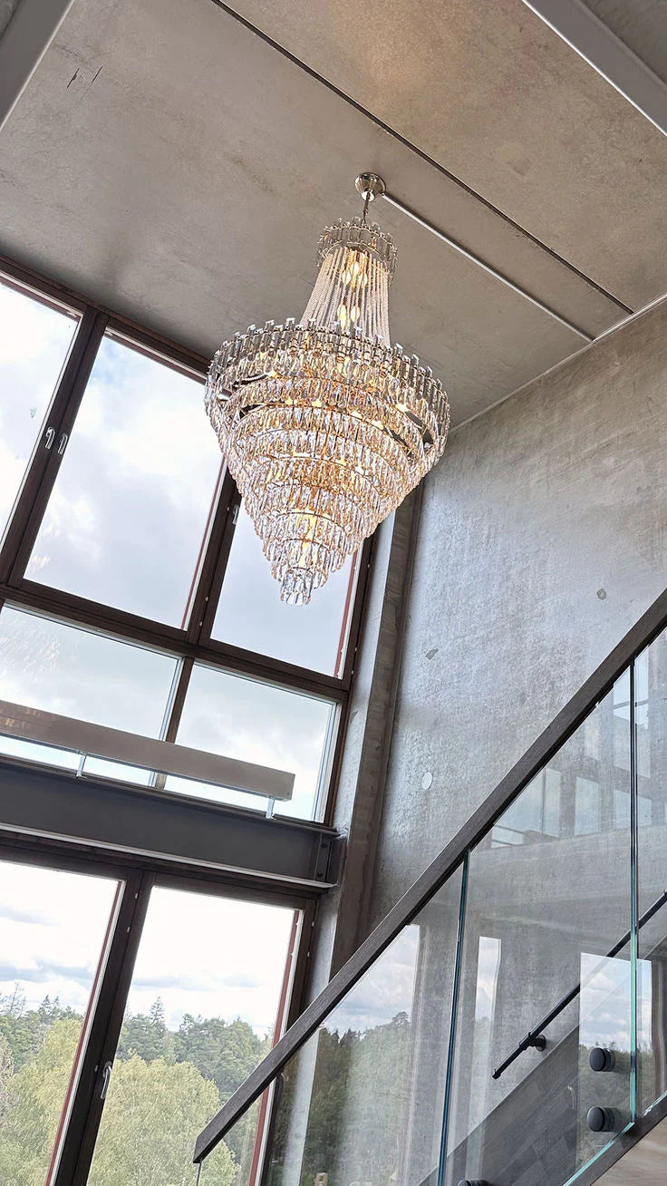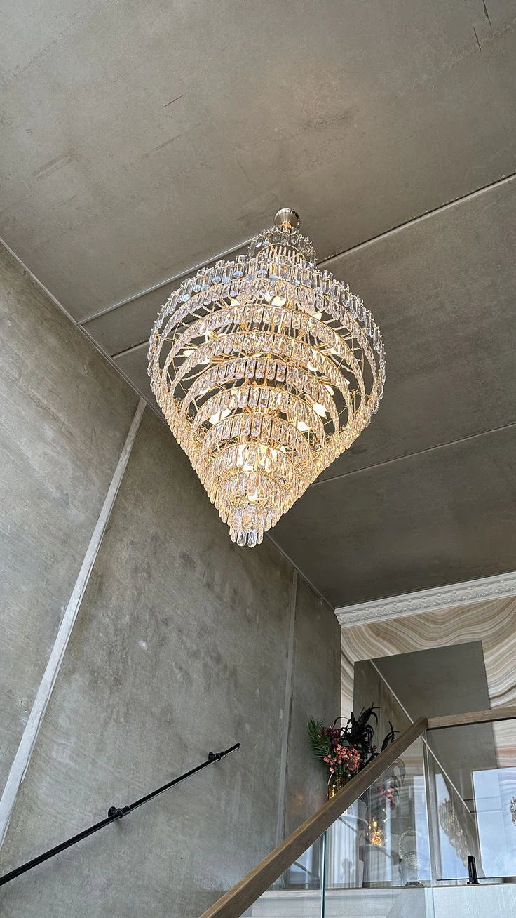 Elevate your space with our Luxury Modern Multi-tiered Crystal Chandelier. Crafted from high-quality K9 crystal and electroplating metal, this stunning light adds elegance to any staircase, foyer, or villa. Its sleek design boasts luxury and radiates a beautiful glow. Upgrade your space today with this stylish statement piece.
