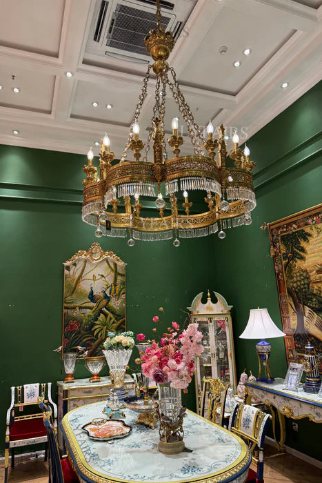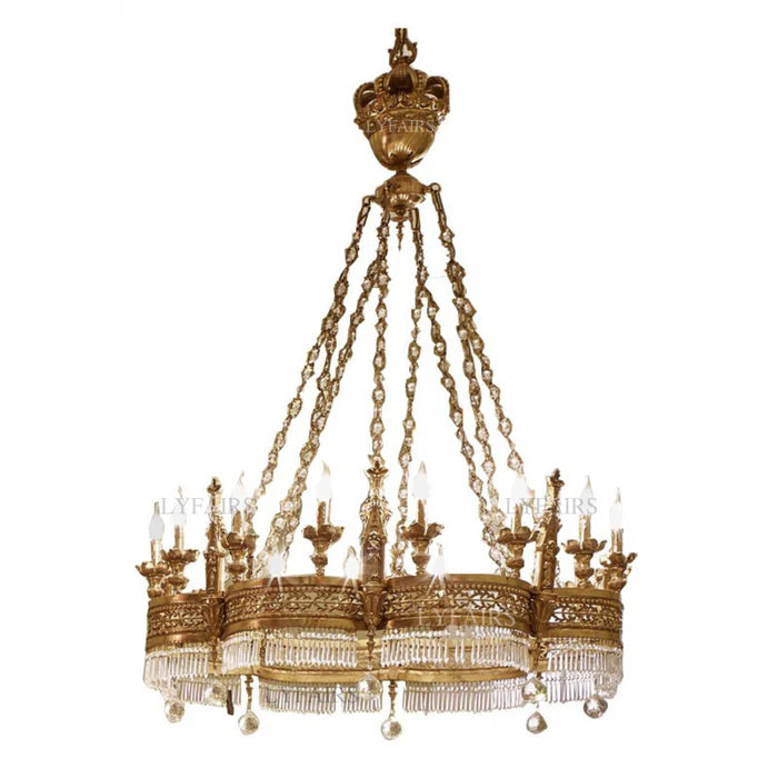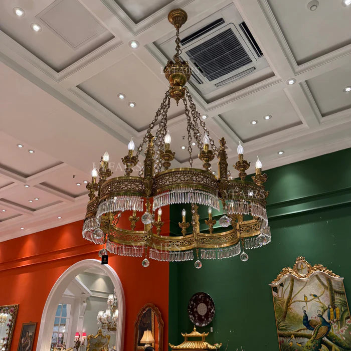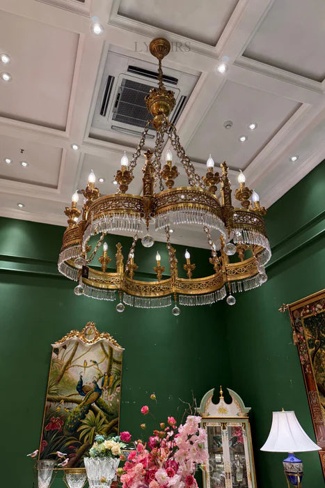 LYFAIRS x FH&Home Antique Bronze Regal Crown Crystal Chandelier