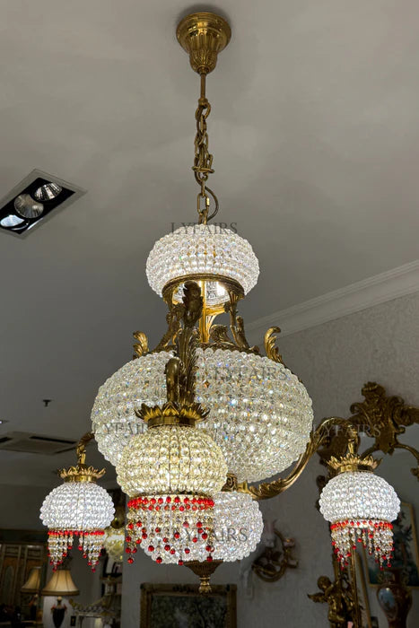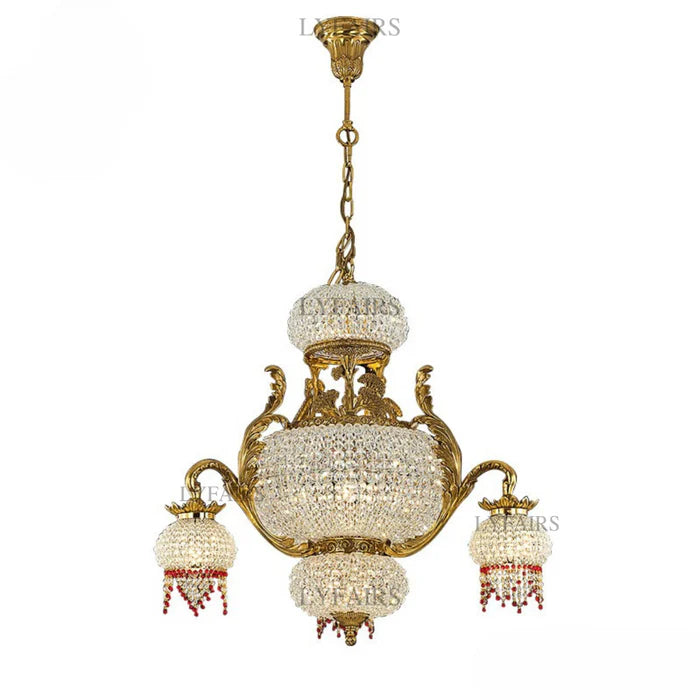 LYFAIRS x FH&Home Arabian Night Opulence Luxury Vintage Brass Chandelier with Ruby Teardrops