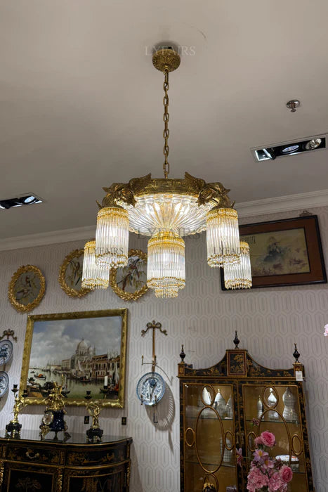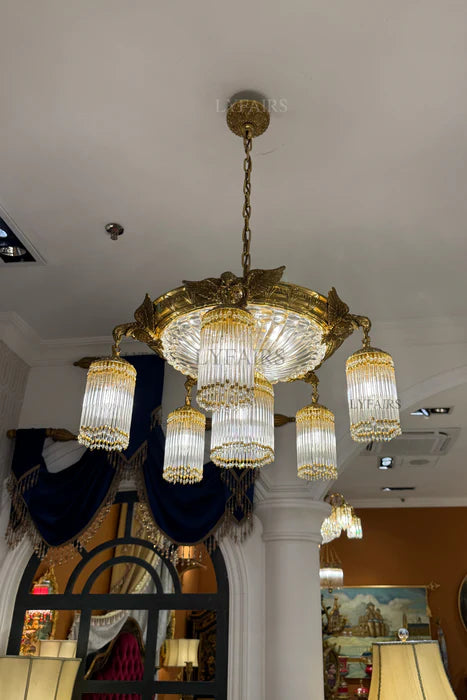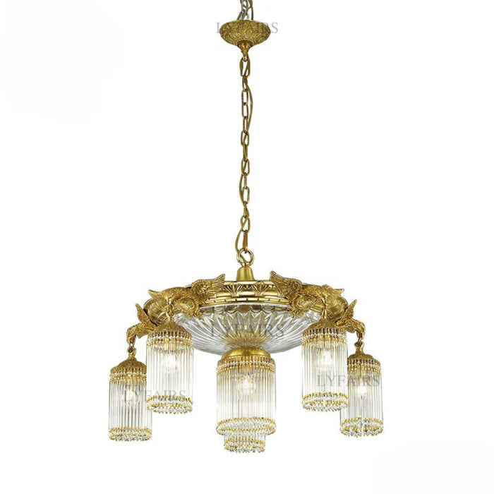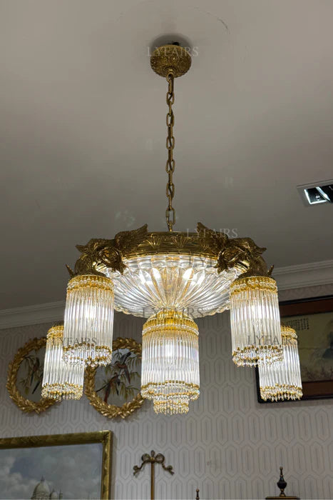 LYFAIRS x FH&Home Baroque Brass Birds Handcrafted Glass Rods Chandelier
