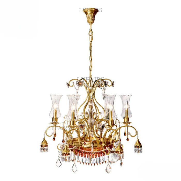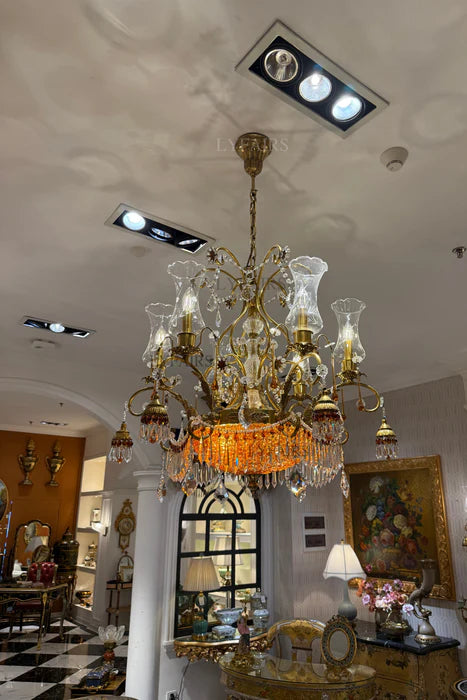 LYFAIRS x FH&Home Baroque Brass Branches Crystal Chandelier with Glass Lampshades