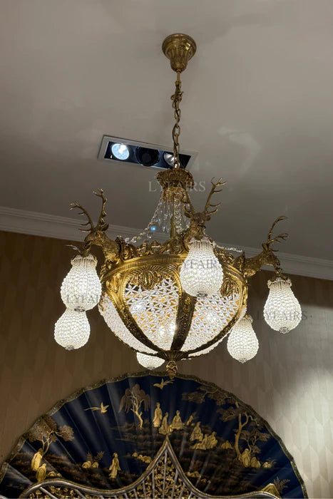 LYFAIRS x FH&Home Baroque Brass Deer Crystal Chandelier for Palace/Hotel