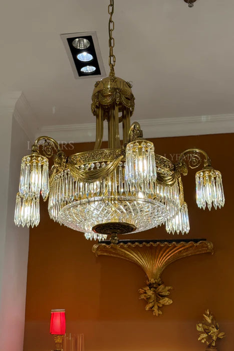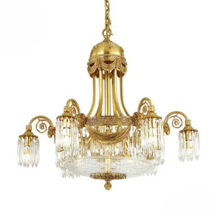 LYFAIRS x FH&Home Baroque Brass Festoon Handecrafted Glass Crystal Chandelier SKU DY-02504089