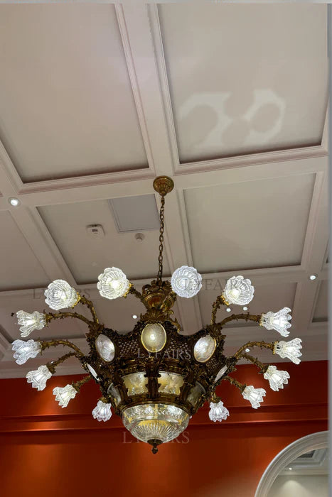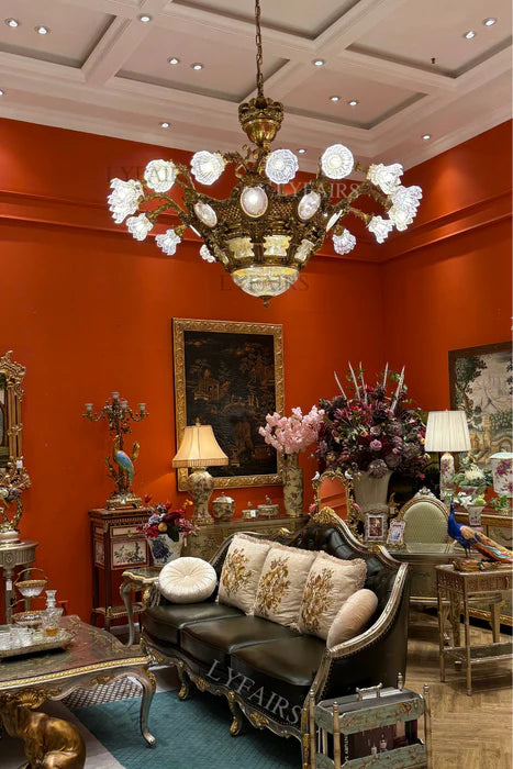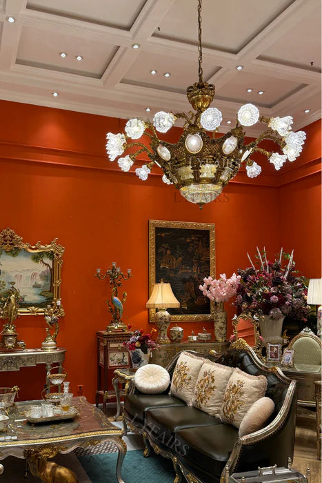 LYFAIRS x FH&Home Baroque Elegant Floral Glass Chandelier