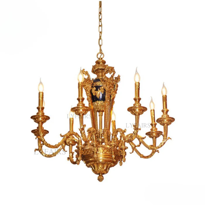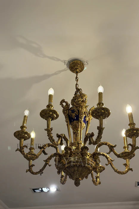 LYFAIRS x FH&Home Baroque Exquisite Brass Carved Chandelier with Blue Porcelain
