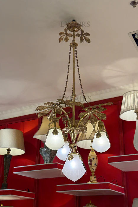 LYFAIRS x FH&Home Brass Leaves Fruit-inspired Glass Chandelier