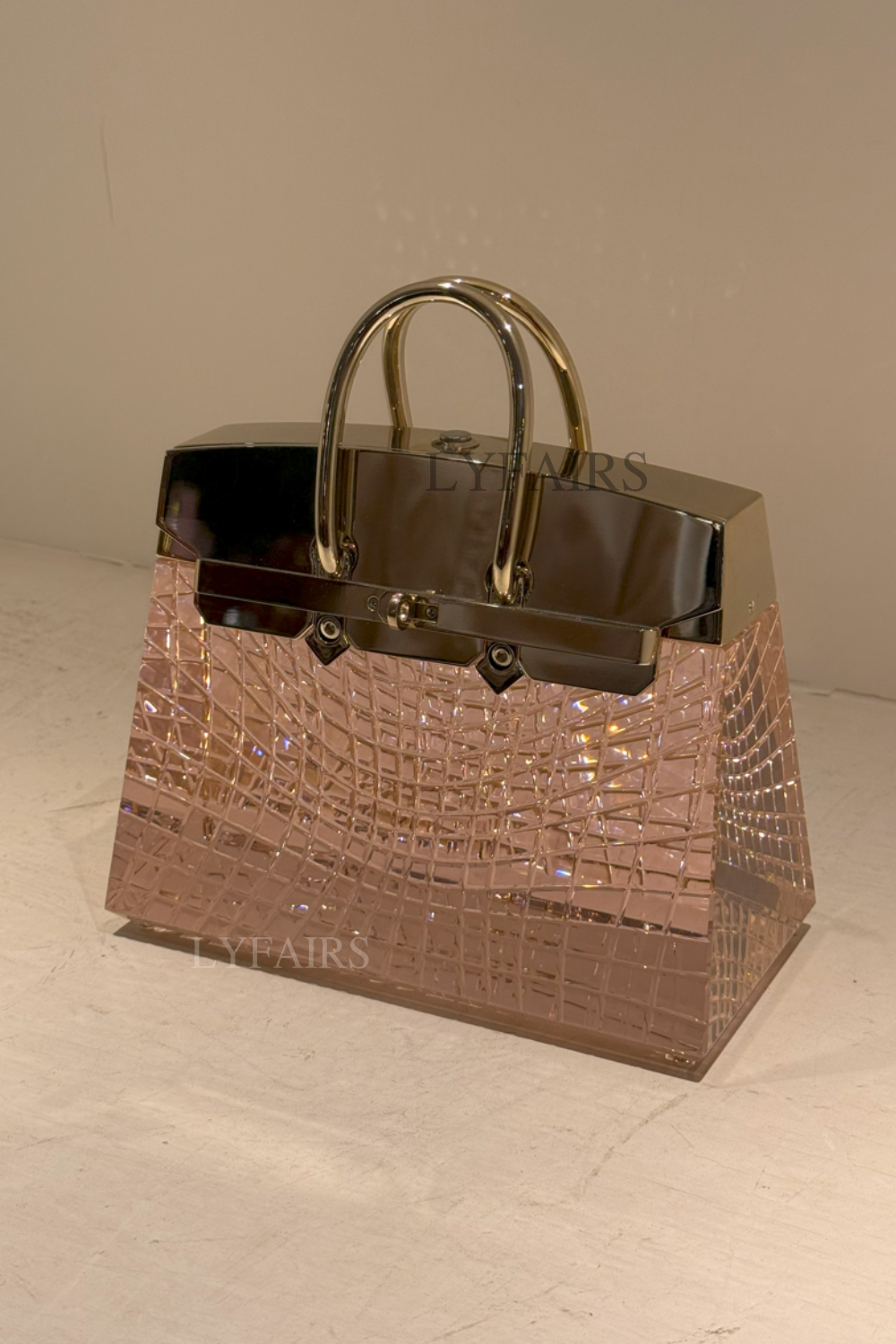LYFAIRS x FH&Home Delicate Pink Glass Handbag Table Lamp with Brass Accents