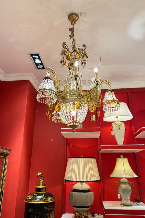 LYFAIRS x FH&Home Gilded Baroque Splendor in Amber Flame Crystal Chandelier