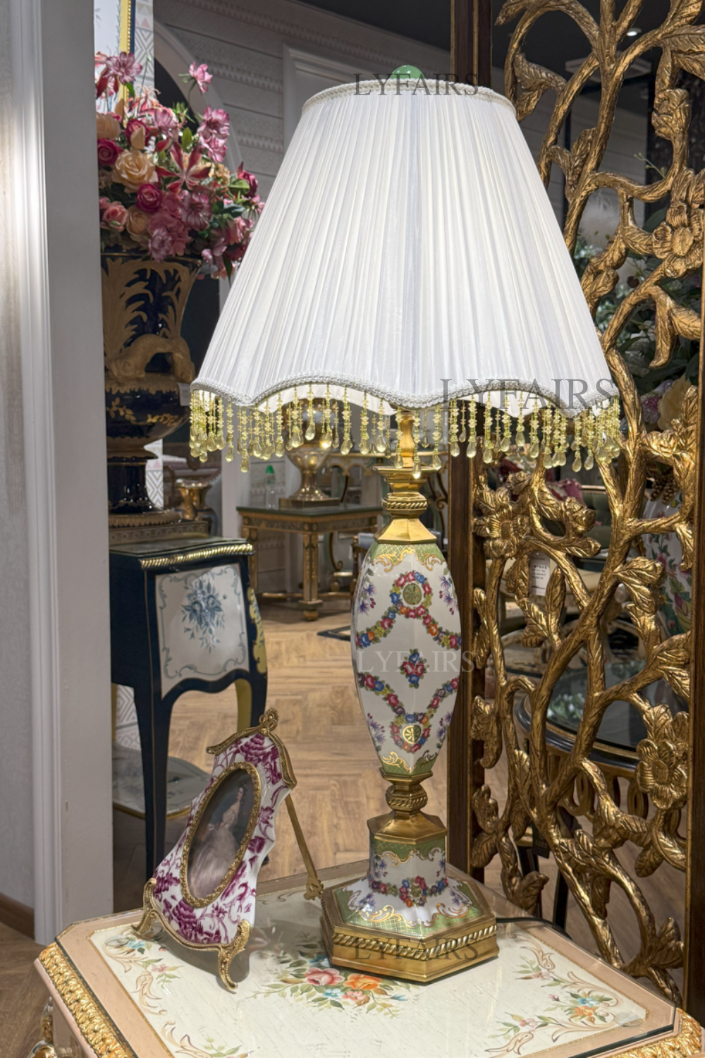 Material: | Brass, Porcelain, Fabric Lampshade |