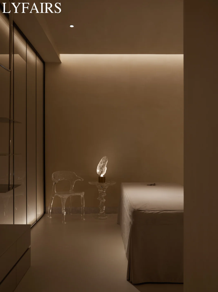 The LYFAIRS x GORDON GU Ripple Artistic Side Table draws inspiration from nature’s water vortices—dynamic spirals that embody both beauty and hidden intensity. Crafted to capture the fleeting essence of a vortex, this piece transforms a moment of natural power into a tangible work of art. Its transparent material balances the impression of danger with elegance, creating a unique sensory experience that engages sight and touch. Designed with refined artistry, the table seamlessly integrates natural symbolism into functional décor, offering a sophisticated yet accessible statement piece for any environment. Water means wealth in traditional Chinese culture. Whirlpool symbolizes the accumulation of wealth, so the products boast artistic beauty and auspicious meaning as well.