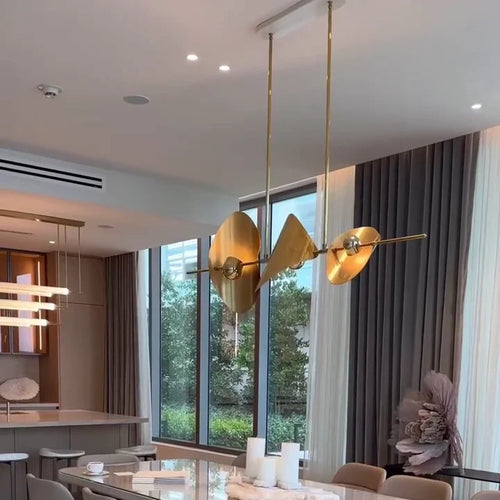 Minimalist Linear Brass Chandelier for Dining Room/Kitchen Island