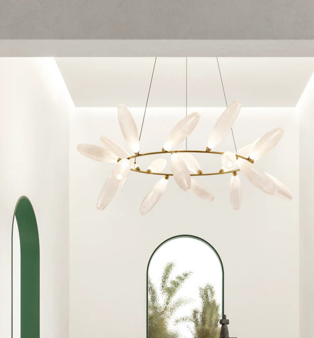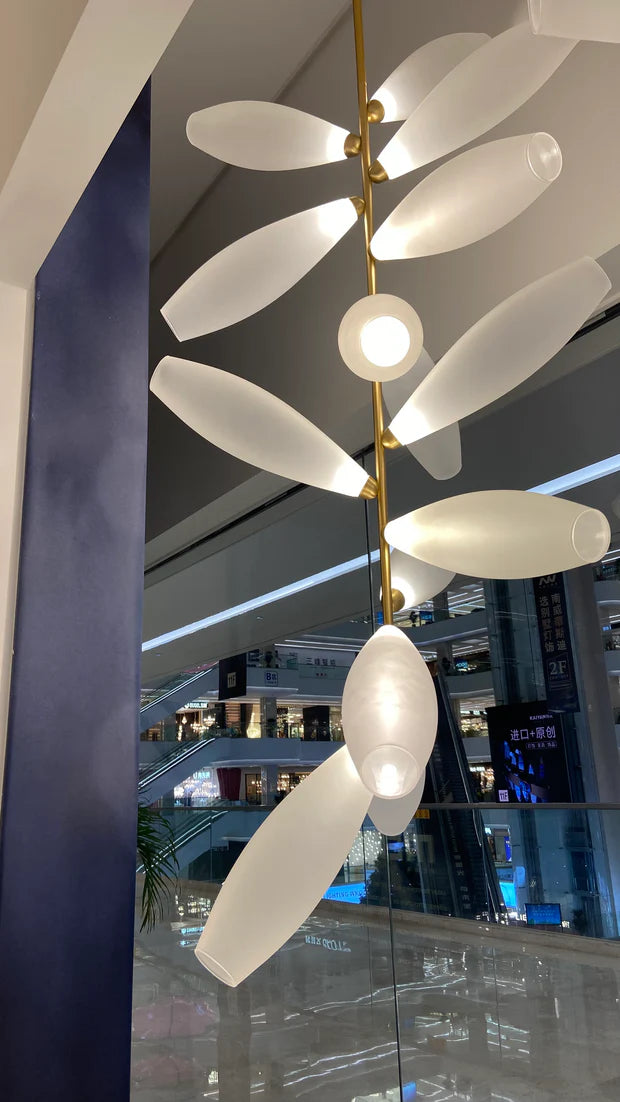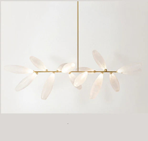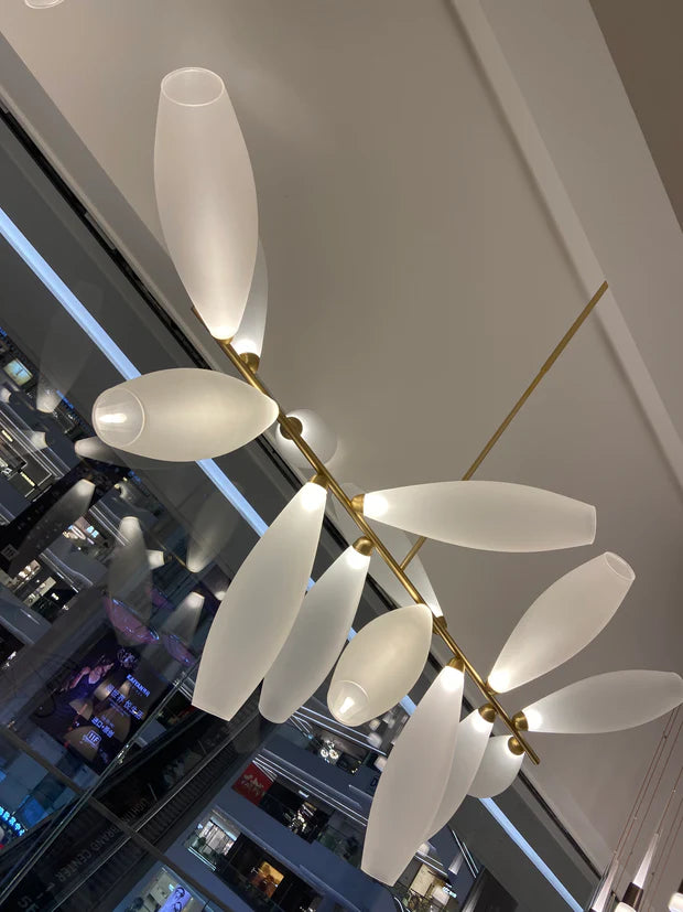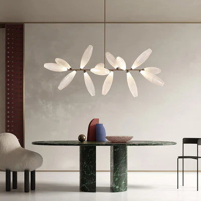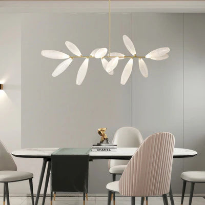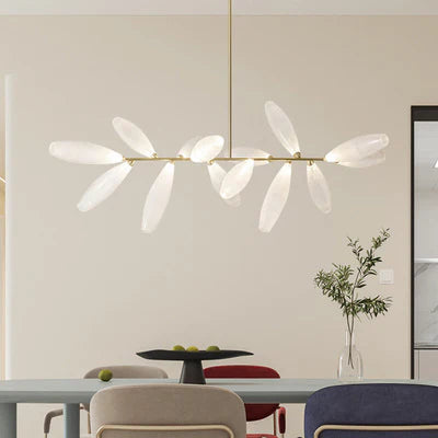 Minimalist Linear Rice Grain Shaped Bulb Iron Chandelier for Dining Room