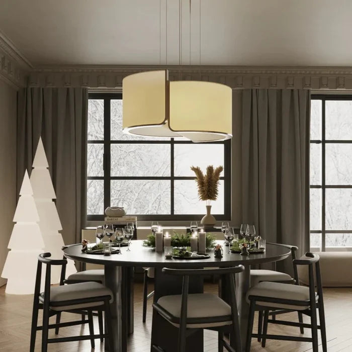 Minimalist Round Slub Cloth Chandelier for Low-ceiling