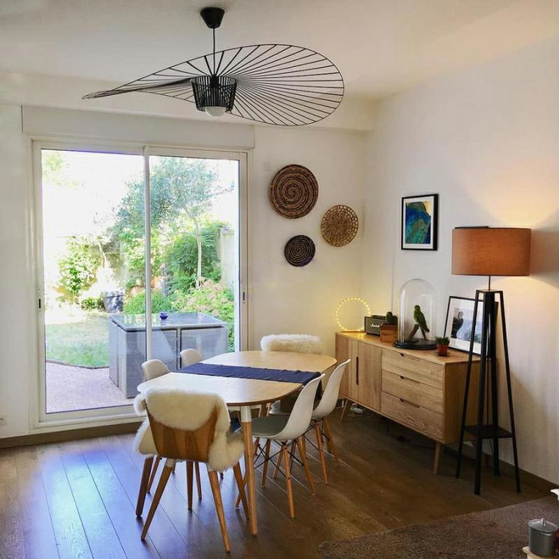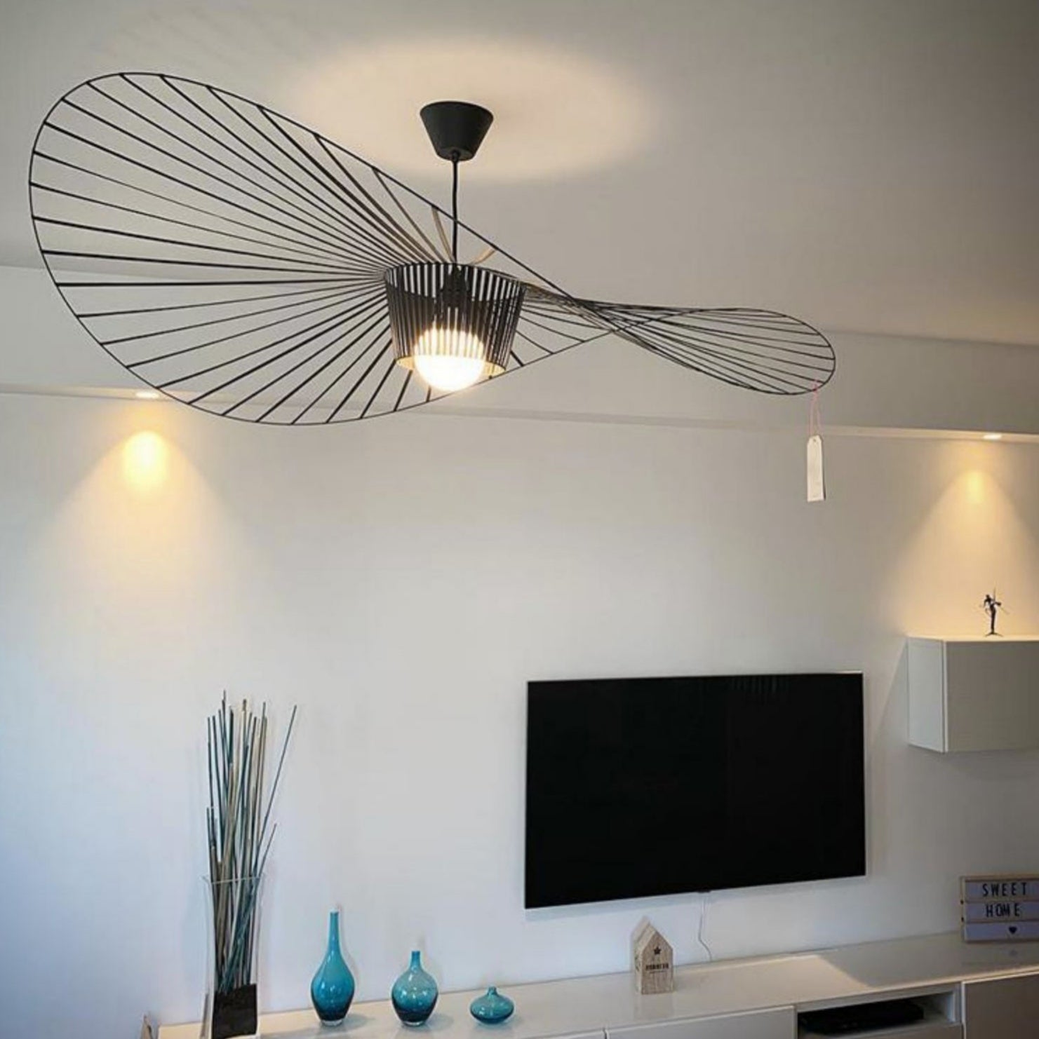 Minimalist Straw Hat Pendant Light For Restaurant Creative Black Finish Iron LED Living/ Dining Room Chandelier