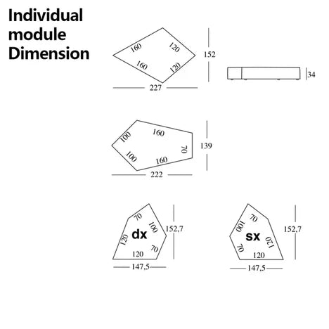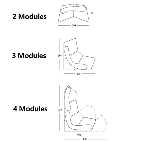 The Modern 2/3/4 Modules Curved Rock Corner Sofa offers the ultimate blend of style and versatility. Featuring four unique modules, including irregular shapes, polygons, and squares, this sofa allows for customizable seating arrangements. With adjustable backrests and the option to order individual components, you can create a one-of-a-kind look that fits your needs.