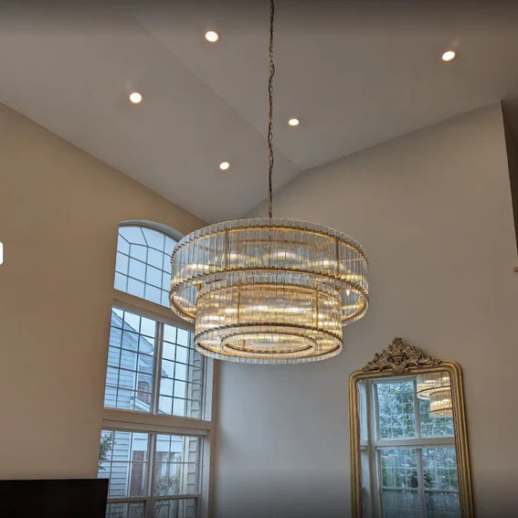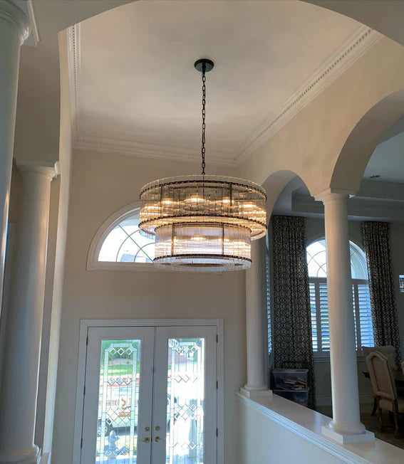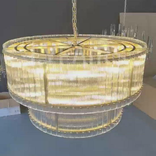 Modern 2-Tier Round Handmade Fluted Glass Panels Chandelier