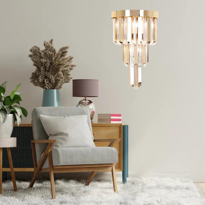 Modern 3-tiered Metal Crystal Wall Lamp for Bedroom/Living Room/Hallway