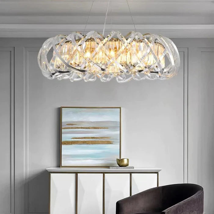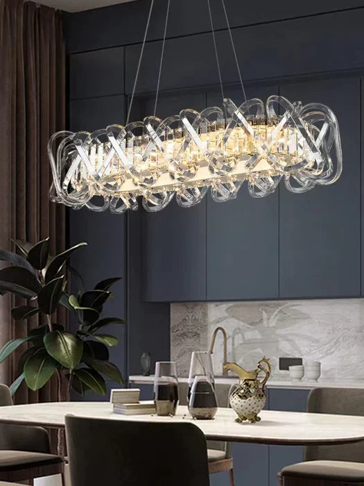 Modern Art Light Luxury Crossed Shell Transparent Crystal Chandelier Suit for Dining/Living Room