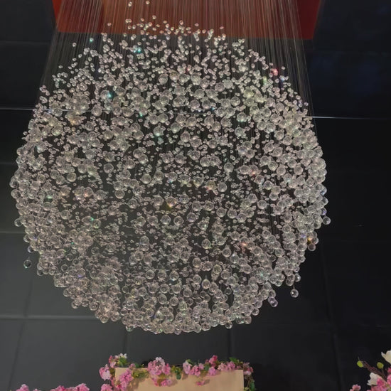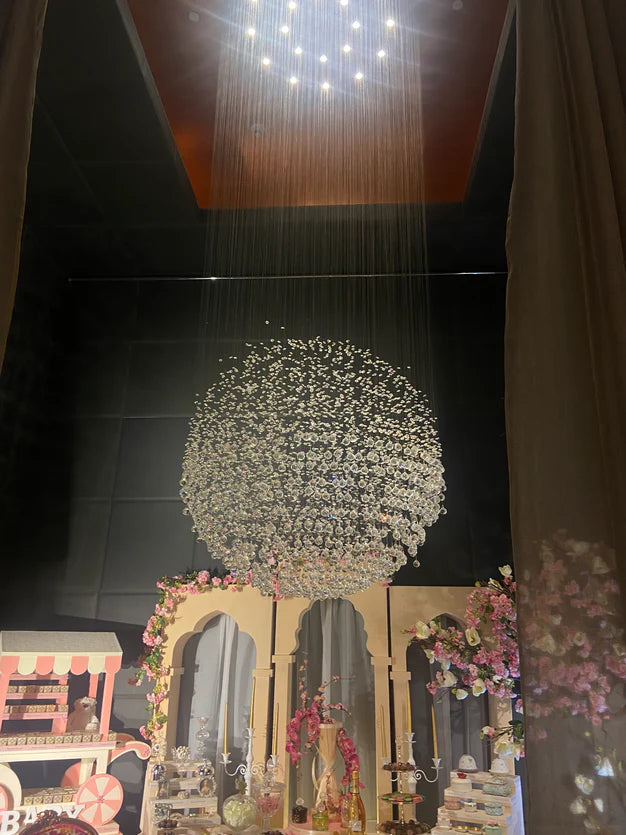 Elevate your living space with our dazzling Modern Ball Crystal Raindrop Chandelier. Its stunning design will add a touch of elegance and vibrance to any room. Perfect for living rooms, staircases, and foyers, this chandelier is sure to impress.