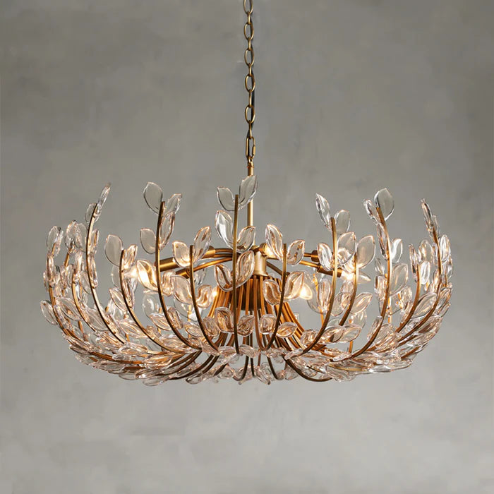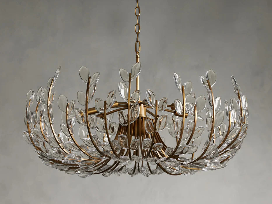 Modern Brass Branch Glass Leaves Chandelier for Low-ceiling