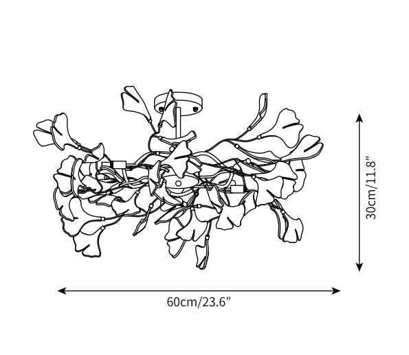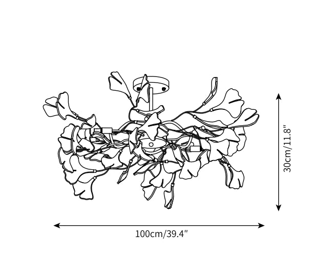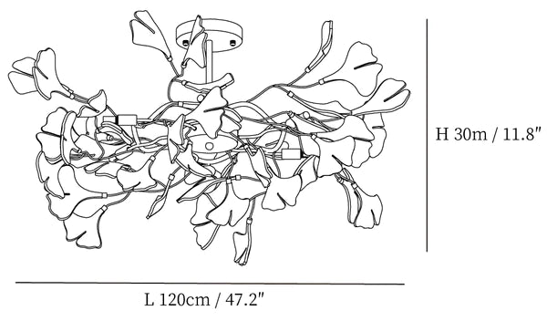 Featuring a classic gold tone with its metal and iron structure, this Ginkgo Leaf Pendant Lamp provides sturdy support and an elegant look. The ginkgo leaves made of ceramic are white and elegant, smooth and easy to clean, and stand in sharp contrast with the golden holder. When the lights are turned on, they emit a soft glow, adding a natural warmth to any room. This fixture is a simple and beautiful lighting option for the modern home.
